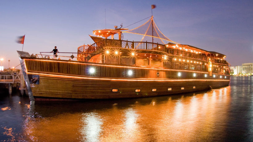 Premium Dhow Cruise Creek is the biggest dhow on deira creek, you can have the full clear view of Deira and Bur dubai area in the more bigger dhow. Enjoy the lower deck as well as the upper deck view including with buffet dinner, tanoura dance show, puppet show and unlimited soft drinks.