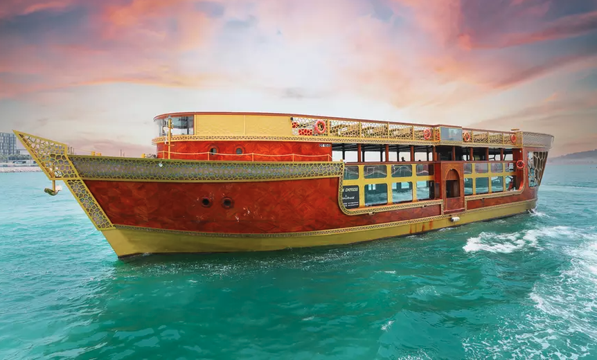 Premium wooden sdhow cruise marina includes the 5 start buffet dinner with more better and luxurious experiance including with 2 hours cruising and welcome drink on arrvial. You will have access to our lower and upper deck. Premium dhow cruise marina deal is best to enjoy dinner with your love ones in the heart of Dubai.